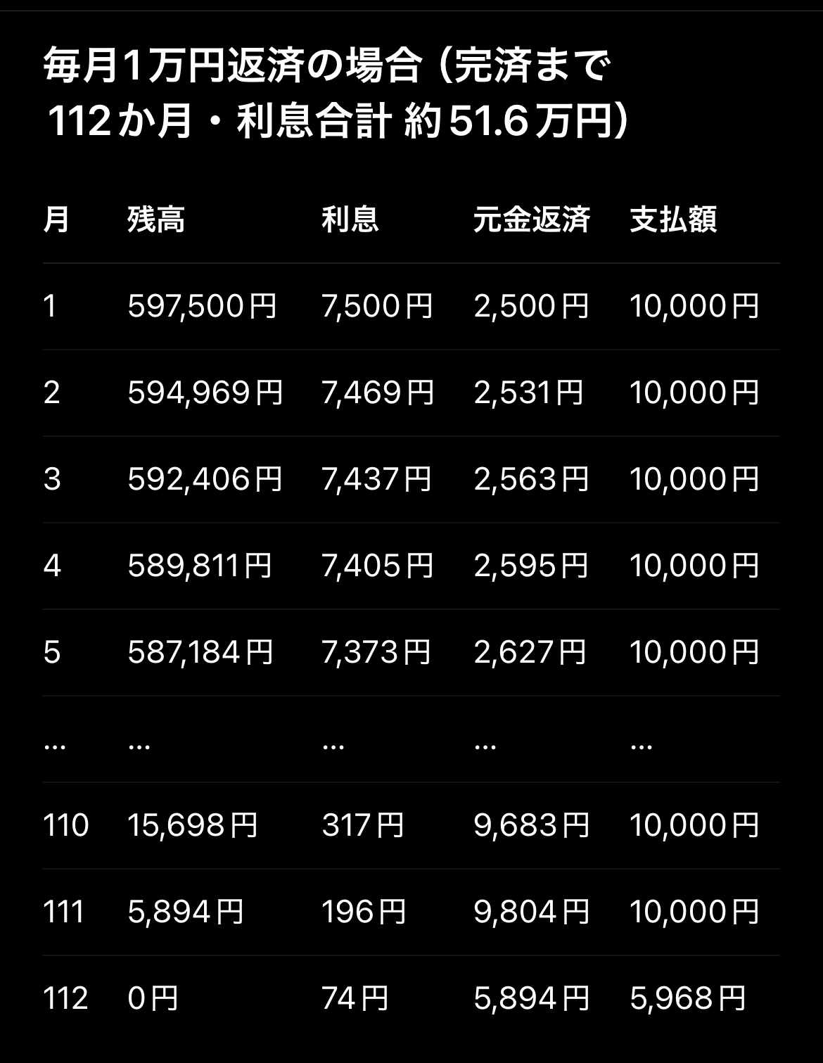 借りた額のほぼ倍の111.6万円を返済しなくてはいけません。